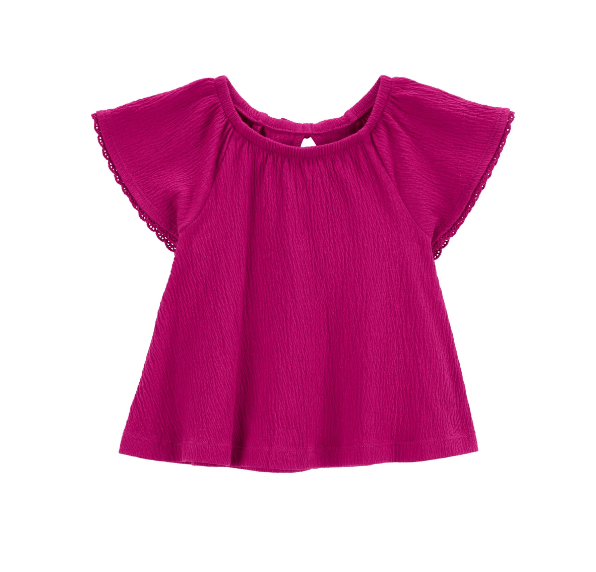 Infunde una dosis de gracia en el guardarropa de tu hijo con esta blusa. Tiene mangas cortas para una sensación fresca y un estilo sin cordones para que se pueda poner rápidamente. La espalda con abertura y los detalles de encaje en las mangas la hacen elegante y con estilo.