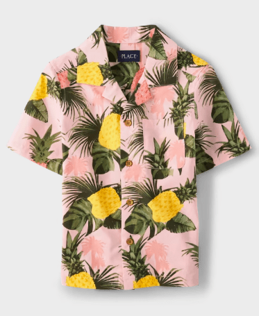 The Children’s Place Camisa de popelina con botones y diseño de piña a juego para niños