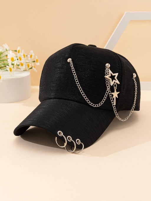 Ver todos los detallesGorra de béisbol con un toque urbano y moderno. Cuenta con decoraciones de anillo y cadena que le dan un estilo callejero distintivo. Perfecta para...