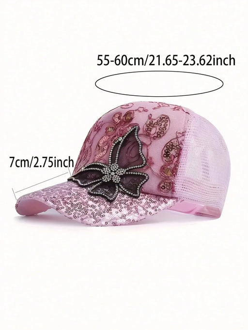 Ver todos los detallesGorra de béisbol clásica con un toque elegante y femenino. Presenta un bordado floral detallado adornado con diamantes de imitación que brillan sut...