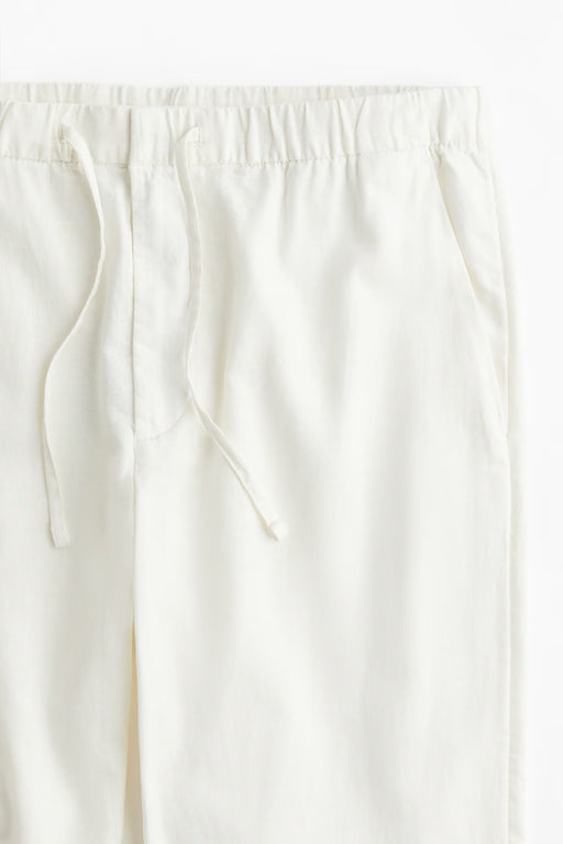 Ver todos los detallesPantalones de tejido ligero de algodón y lino. Corte regular con cintura elástica cubierta y cordón ajustable, cierre de cremallera con corchete oc...