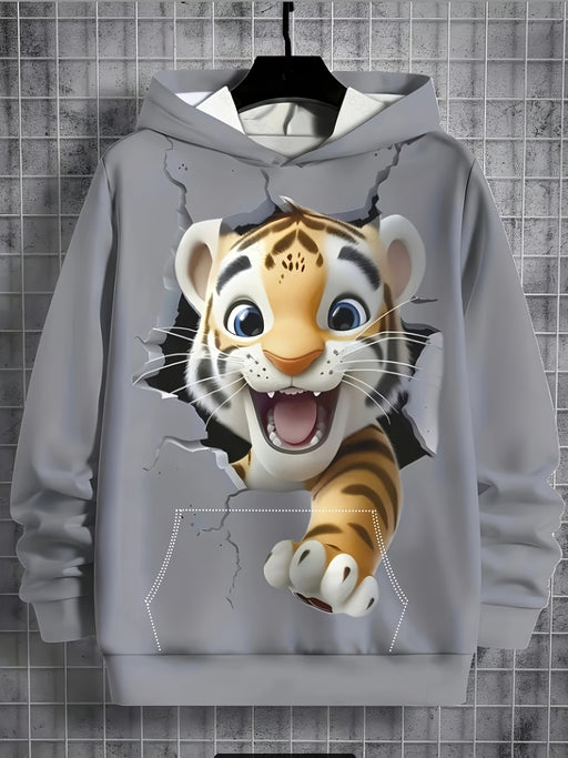 Sudadera casual de manga larga para primavera y otoño, hecha de tela elástica de tigre