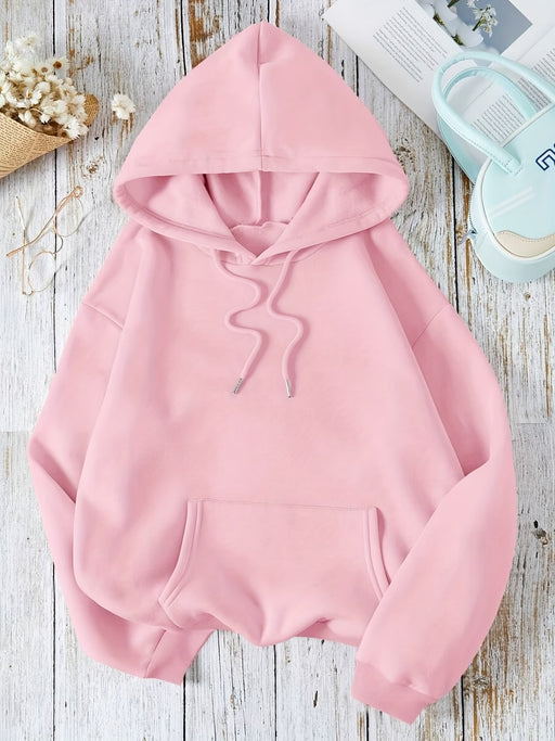 Sudadera con capucha para mujer, color liso, bolsillo anfibio, manga larga