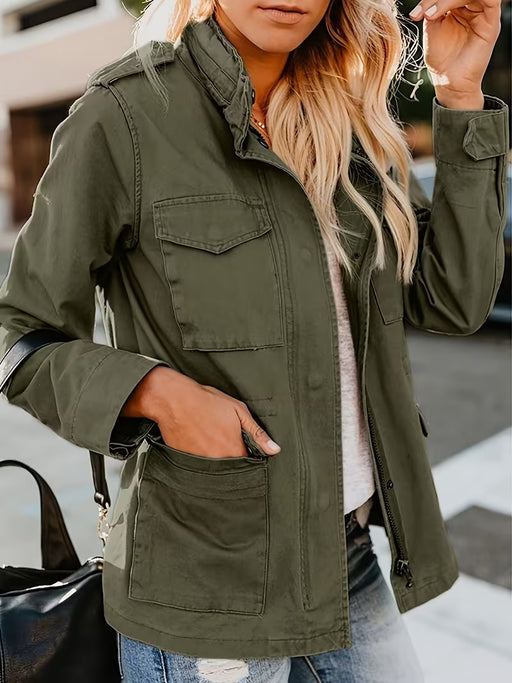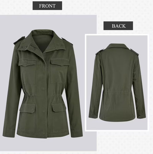 Abrigos utilitarios para mujer de estilo militar con cierre de cremallera y botones a presión