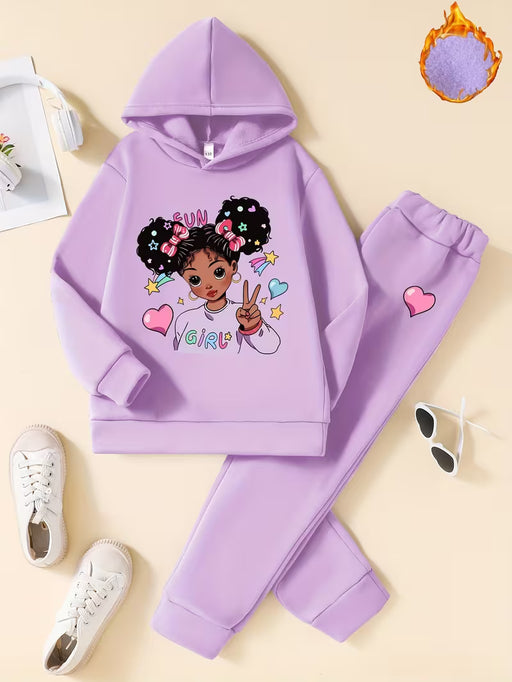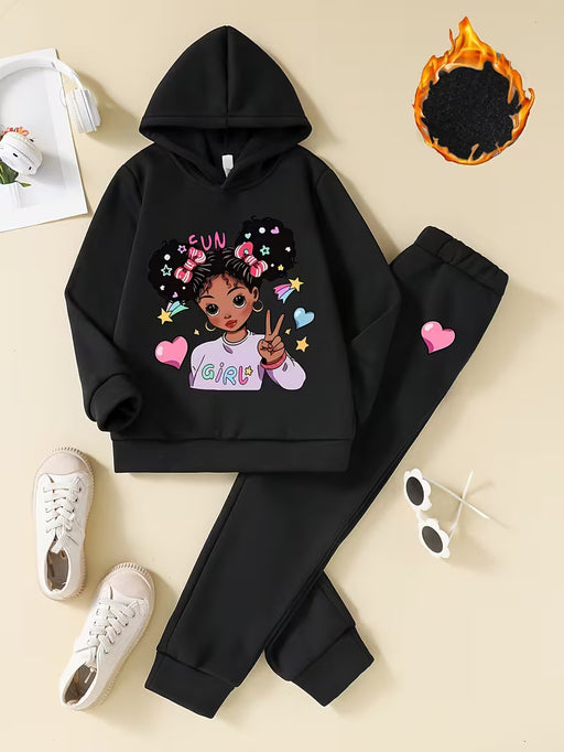 Conjunto de 2pcs sudadera y pantalones con capucha para niñas de otoño/invierno