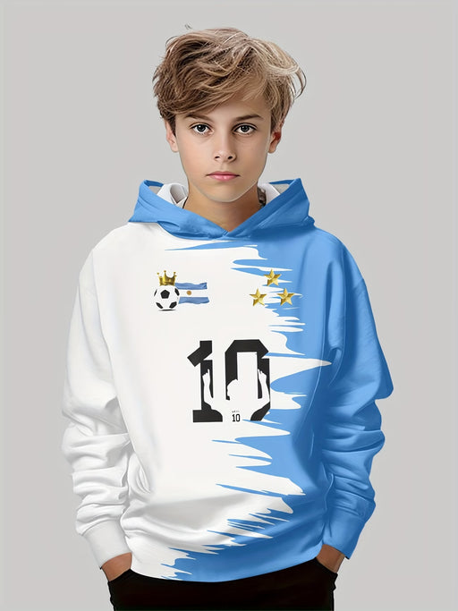 Sudadera con capucha para niño con estampado de fútbol 3D, Jersey casual, diseño azul y blanco