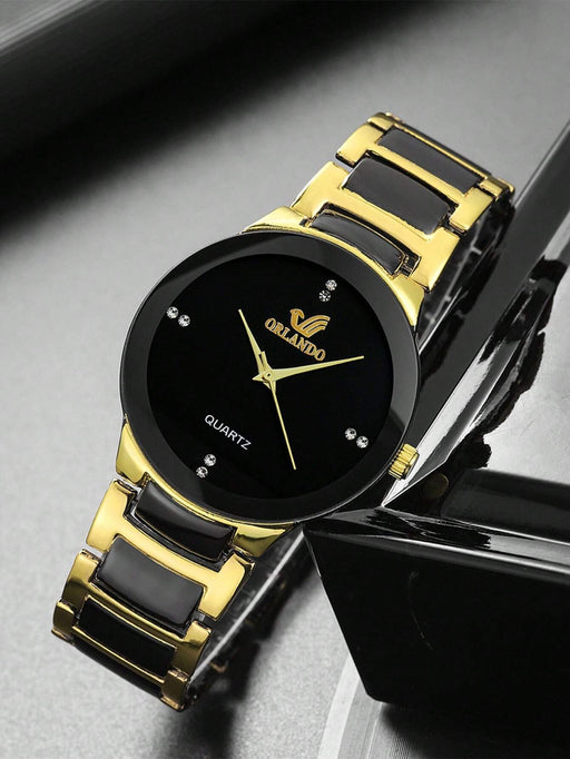 Reloj de cuarzo redondo de aleación de zinc negro y dorado