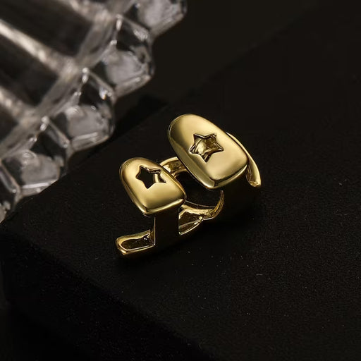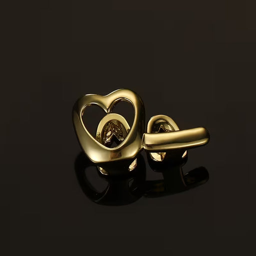 Shein Grillz de cobre en forma de corazón con diseño de rayas de amor huecas, acabado dorado
