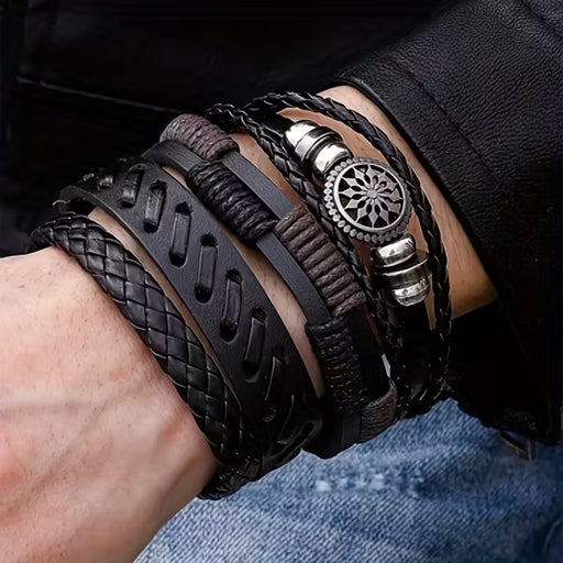 4 piezas/juego de pulseras de cuero sintético para hombres, juego de pulseras punk