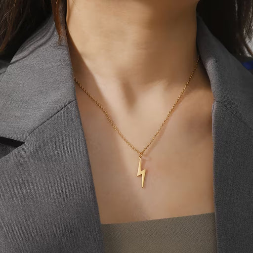 Collar con Colgante de Rayo en Acero Inoxidable Dorado - Diseño Elegante y Minimalista para Mujeres