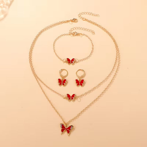Conjunto de 4 piezas de Moda Bohemia para Mujer con Doble Capa y Mariposas