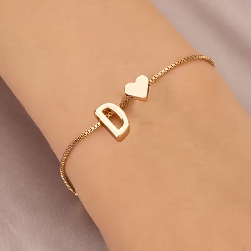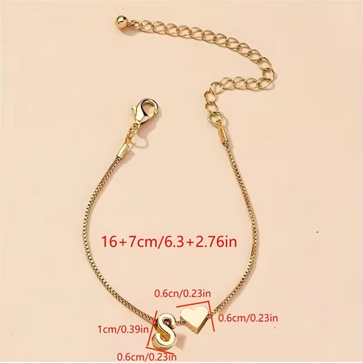 Pulsera De Cadena Fina Con Letras Y Corazón De Amor, Sencilla Y Minimalista