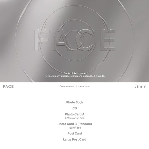 JIMIN DE BTS - [FACE] (Versión Undefinable Face) Libro de fotos + CD + Tarjeta fotográfica
