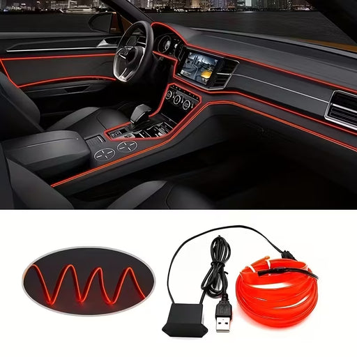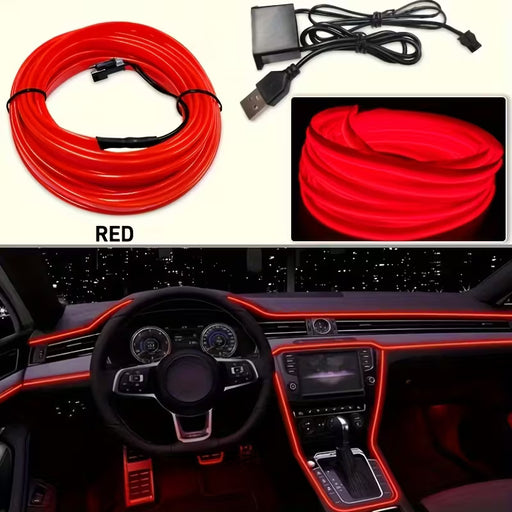 1pc 5M Luces de tira de LED rojo de interior de coche alimentadas por USB, cable EL flexible no impermeable