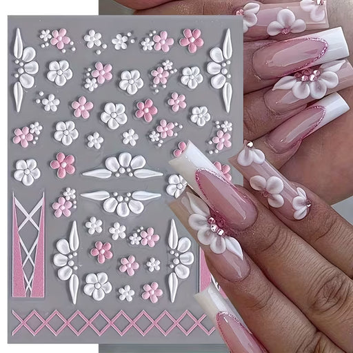 2 Pegatinas de Uñas con Flores y Lazo de Fantasía en Relieve 3D - Acabado Mate