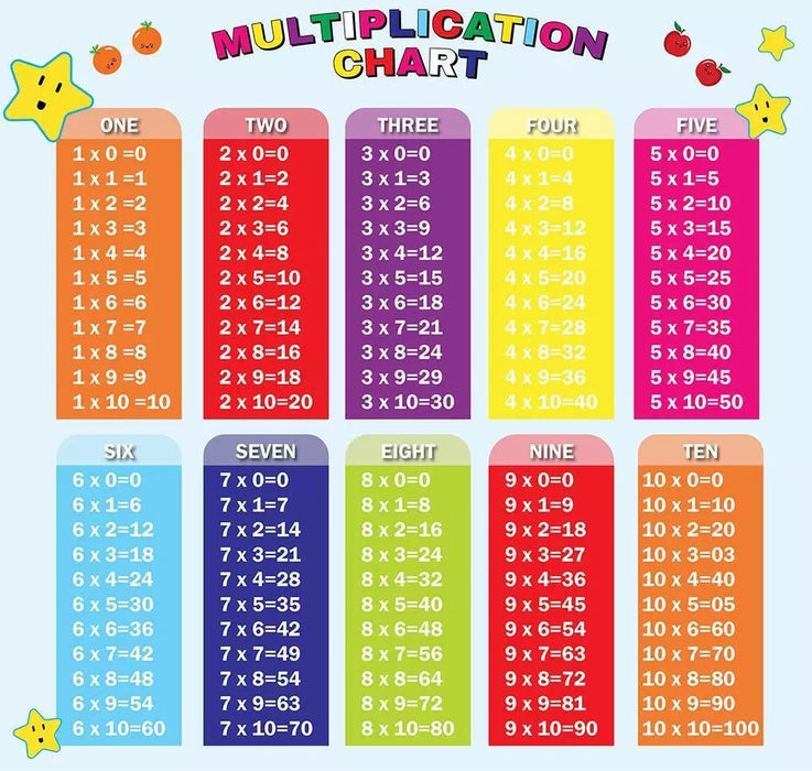 Calcomanía educativa mesa de multiplicar decoración niños matemáticas, 2 piezas