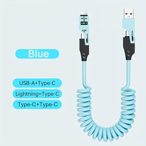 Cable de datos de alta velocidad 4 en 1 con luz de respiración de 65W, ideal para viajes