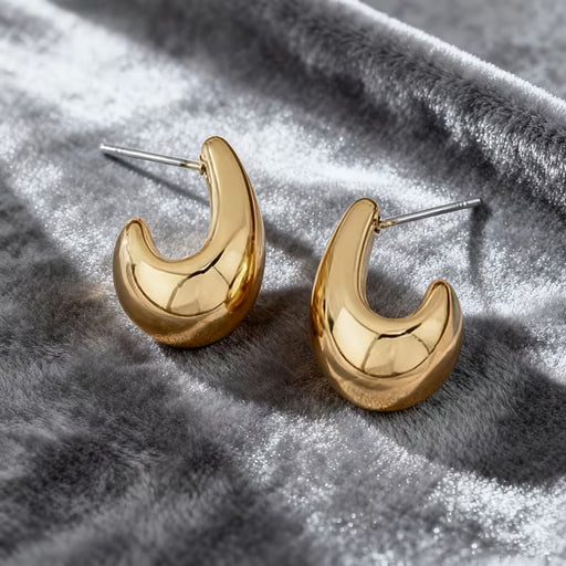 Aretes dorados huecos en forma de gota de agua, Presentan un diseño fácil pero elegante.