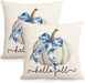 Encantador diseño de calabazas: Este juego incluye dos fundas de almohada de 45,7 x 45,7 cm con elegantes calabazas blancas, cintas florales azules y la frase "hola otoño", perfectas para celebrar la temporada.