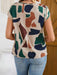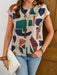 Blusa de manga murciélago estampada, elegante blusa de cuello redondo