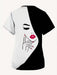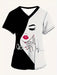 Camiseta elegante de cuello en V para mujer con diseño de retrato de mujer, uniforme de enfermera de manga corta