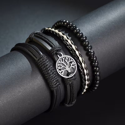 Juego de 4 Pulseras Trenzadas con Símbolo del Árbol de la Vida en Cuero Ecológico
