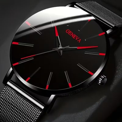 Elegante reloj de cuarzo para hombre con correa de malla de aleación