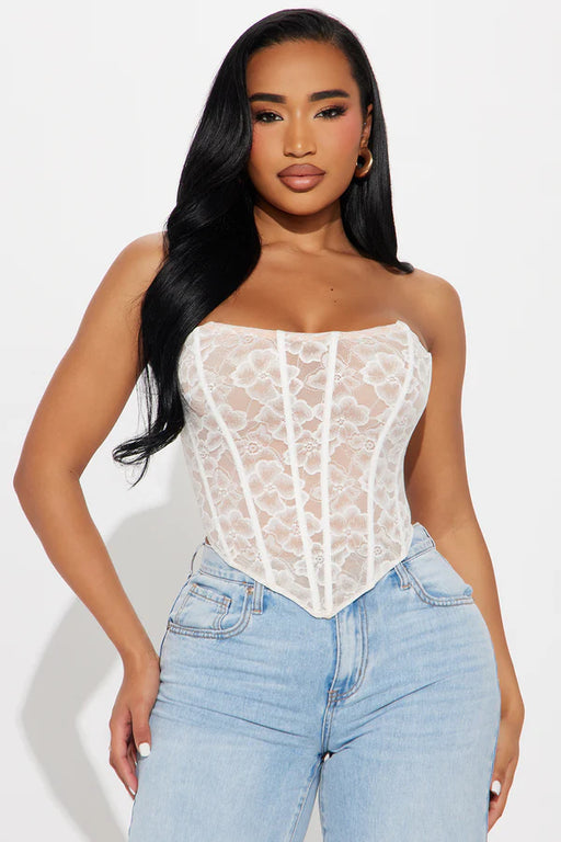 FASHIONNOVA Camisa Top Only Drama Lace Corset - Blanco