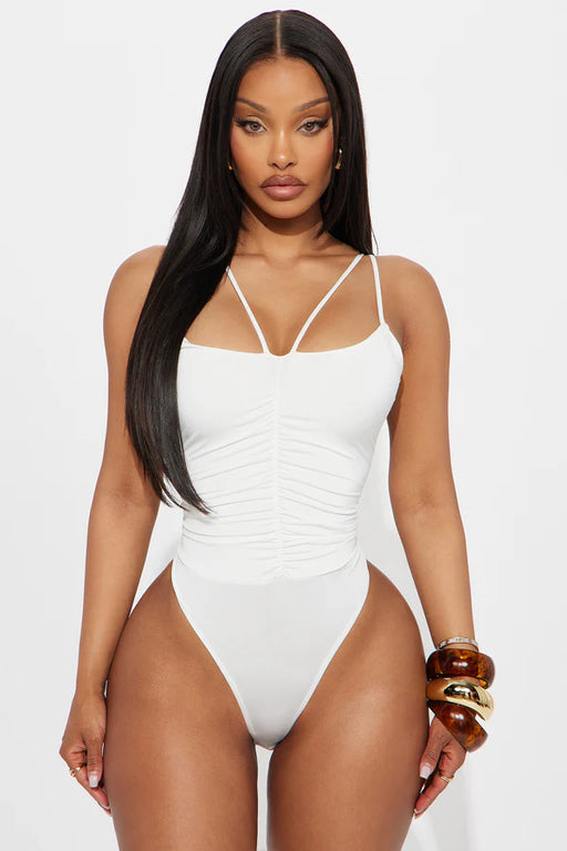 Disponible En Moca. Body De Piel Sintética Cuello En V Tiras De Espagueti Tanga Broche De Cierre Con Stretch VENTA FINAL 95% Poliéster 5% Elastano...