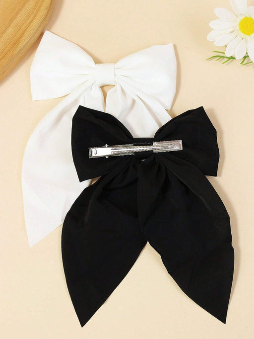 SHEIN 2 pinzas para el pelo elegantes con lazo blanco y negro para mujer