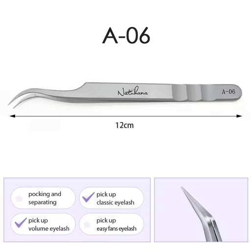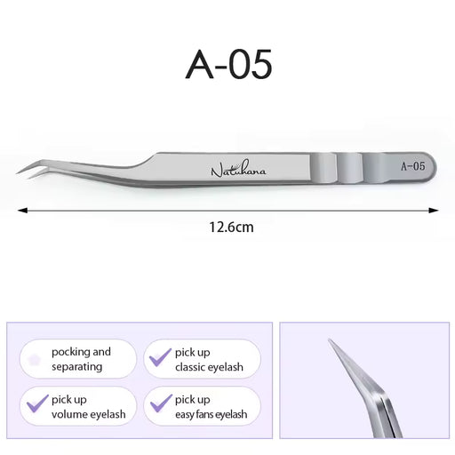 Pinzas para extensiones de pestañas NATUHANA de acero inoxidable