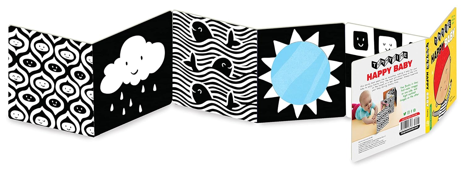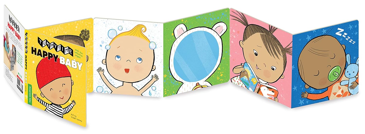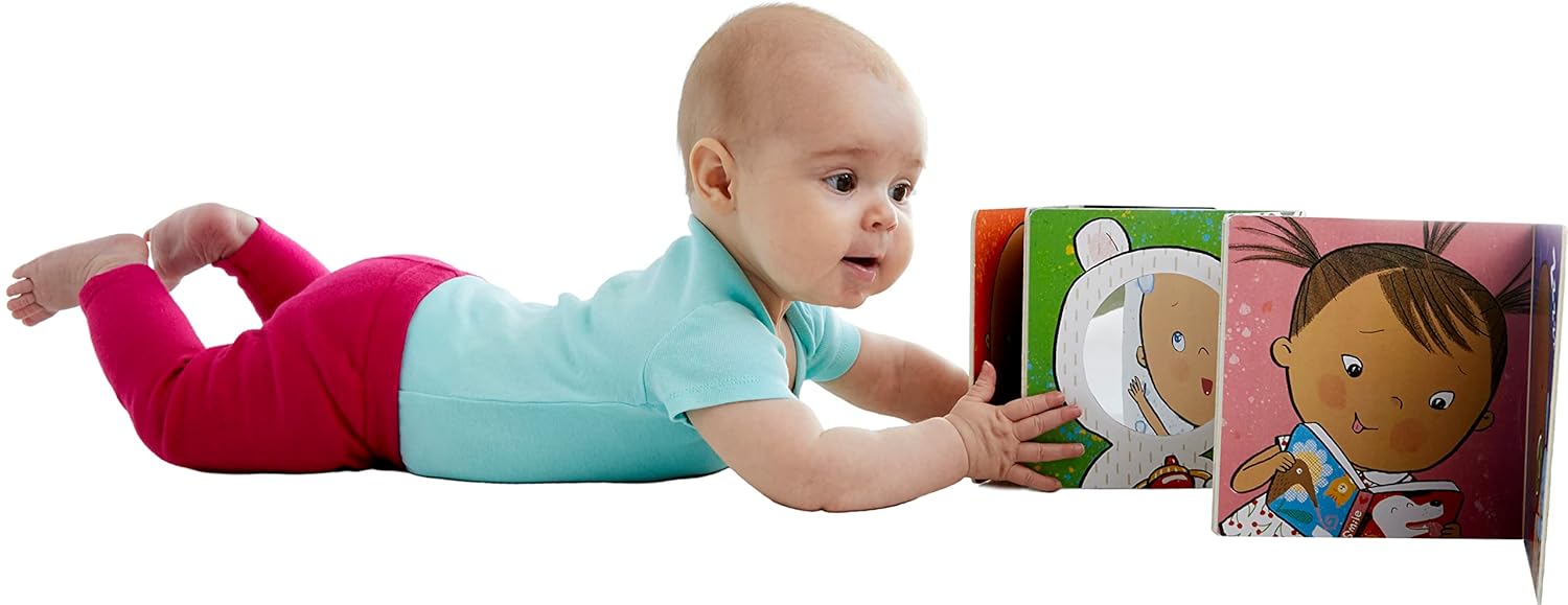 Libro TummyTime: Happy Baby: Un libro plegable resistente con dos espejos para bebés