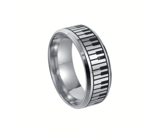 1 anillo creativo de teclado de piano de acero inoxidable con diseño