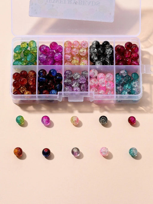1 caja de 10 cuentas de vidrio craqueladas redondas y transparentes de colores variados