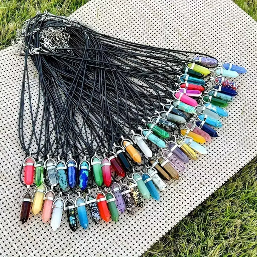 10 piezas de colgantes de chakra de cristal multicolores y collar de cuero negro