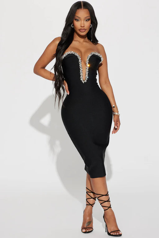 FASHIONNOVA Vestido Midi Sweetest Heart Adornado - Negro