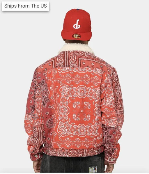 MNML Chaqueta de Camionero Bandana Sherpa Mujer Cachemira Roja