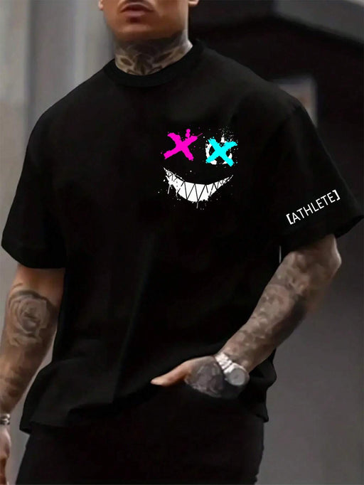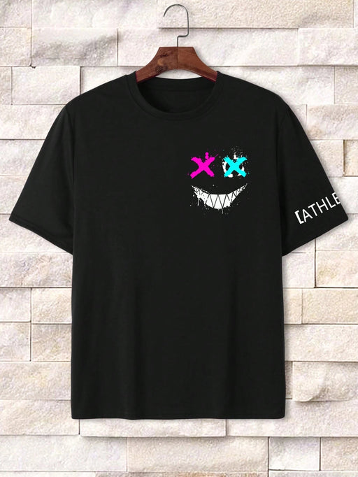 1pc Camiseta de verano casual con cuello redondo con logotipo de MTV para hombre