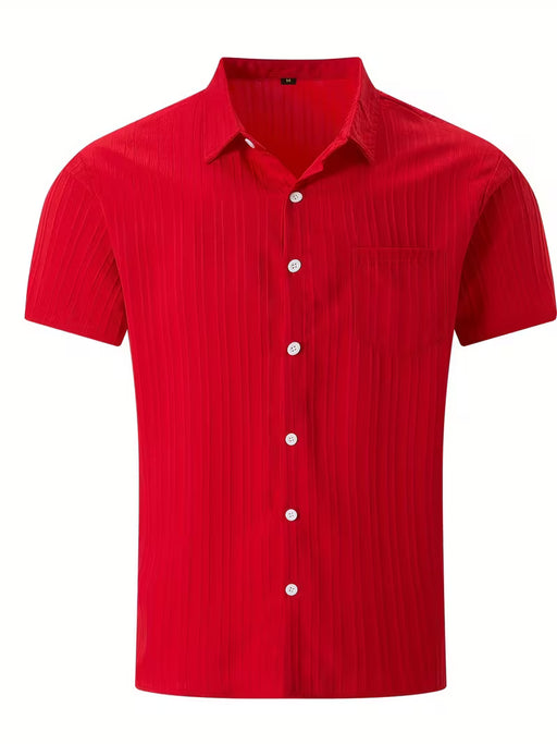 Camisa de verano casual de poliéster de manga corta con cuello de solapa y botones para hombre