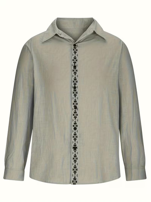 Camisa Cárdigan Casual de Solapa con Estampado de Lino de un Lado para Hombre