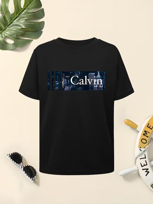 Camiseta Calvin de manga corta con cuello redondo y estampado geométrico