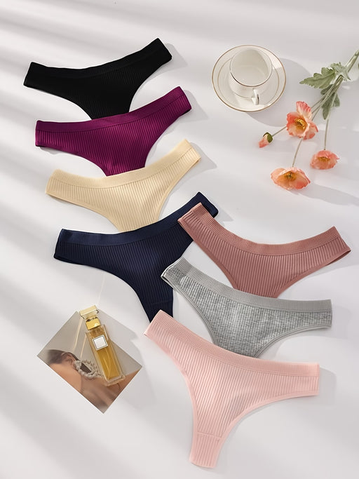 Conjunto de 8 tangas sin costuras diseñadas para máxima comodidad y discreción bajo la ropa. Cada pieza presenta un corte talle bajo que favorece l...