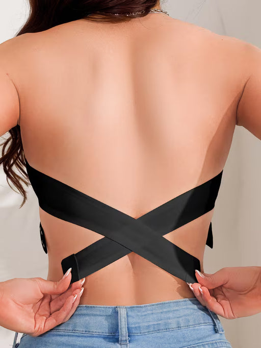 Shein Top tipo bralette de tela negro informal sin espalda para mujer