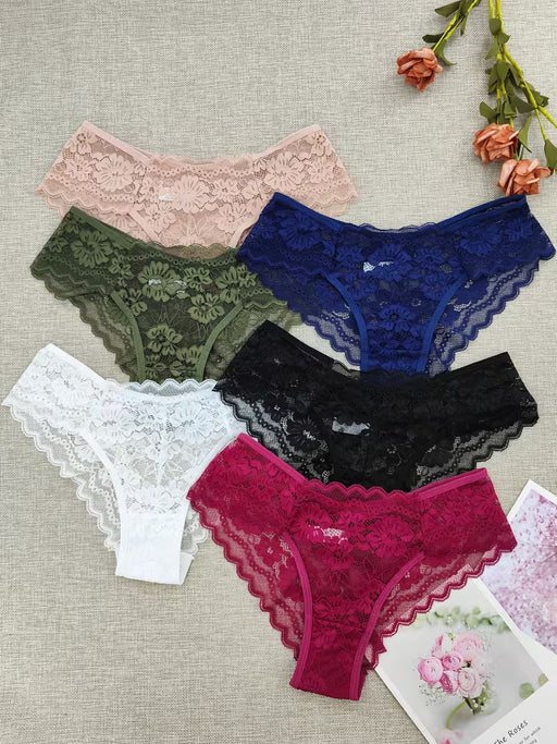 Pack de 6 Bragas Bikini con Encaje en Contraste para Mujeres