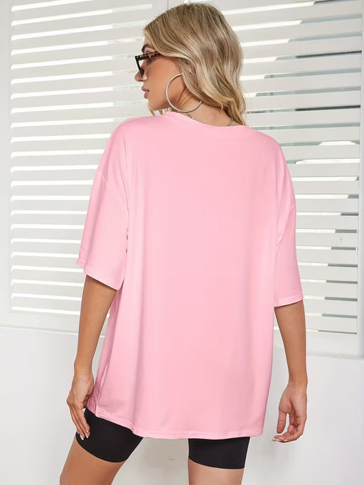 Shein Camiseta informal de manga corta con cuello redondo y estampado de letras para mujer de Rovax