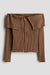 Cárdigan suave de punto acanalado. Cremallera delantera, hombros anchos y mangas largas.
