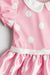 Conjunto de disfraz compuesto por un vestido de malla estampada de buen ajuste con falda de satén y una cofia. El vestido tiene cuello redondo, botones a presión en un hombro y mangas abullonadas con un pequeño elástico. Frunces en la cintura, cinturilla elástica y falda voluminosa forrada con capas de tul. Cofia con orejas aplicadas y un gran lazo en la parte superior. Se ata bajo la barbilla.