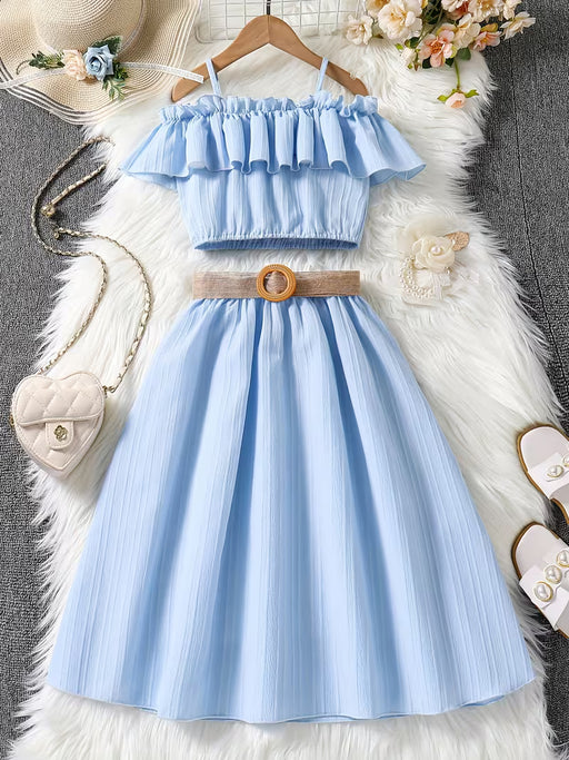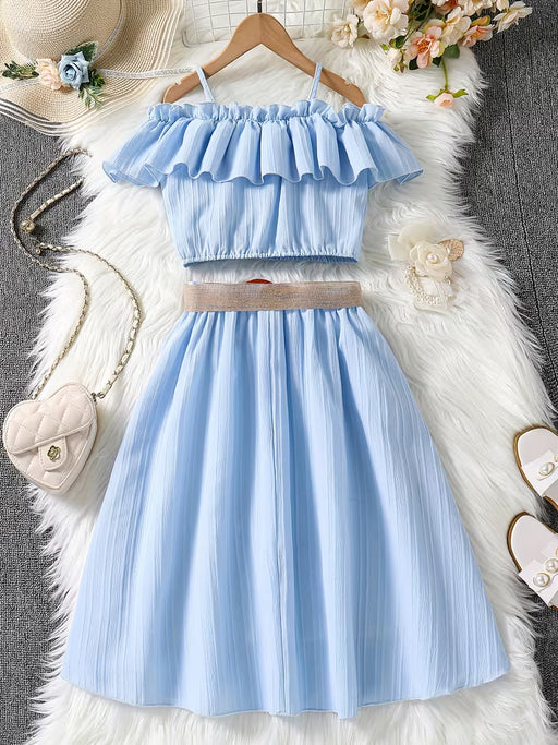 SHEIN Conjunto Elegante de Top con Volantes y Falda Sin Hombros para Niñas