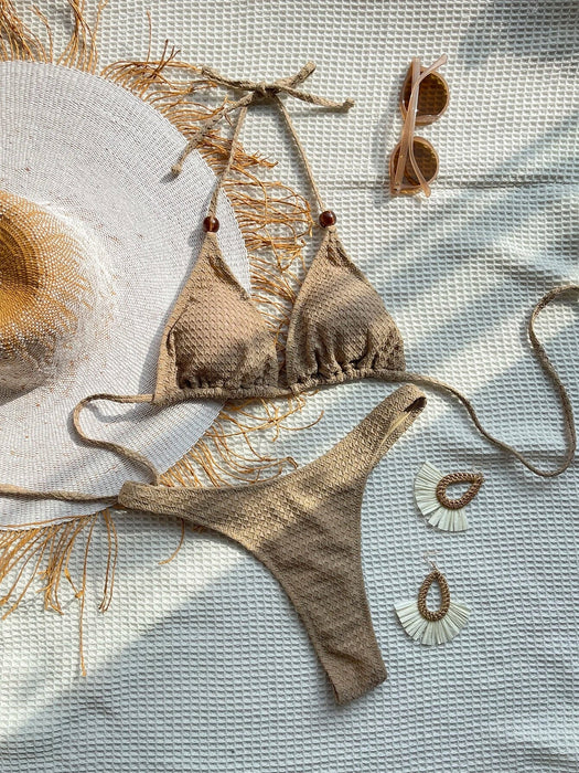 SHEIN Swim Conjunto de bikini de triángulo con cuello halter liso para playa de verano