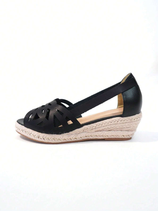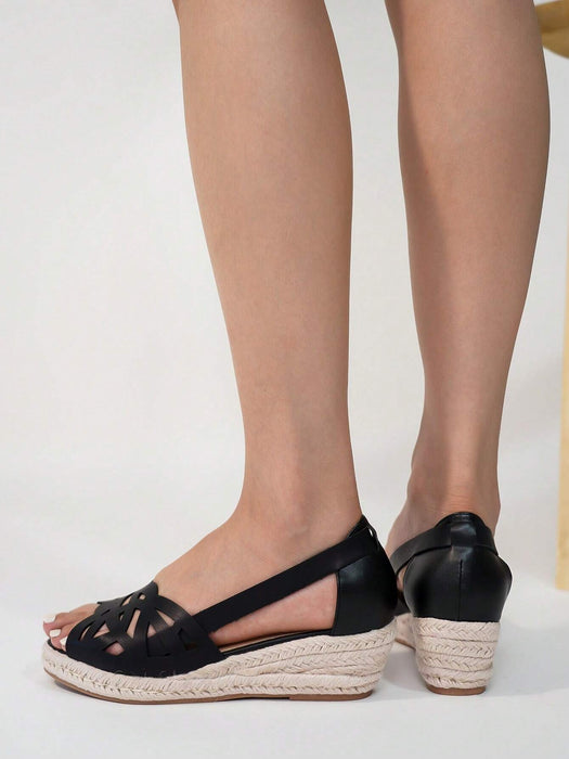 Sandalias de alpargatas huecas para mujer, sandalias de cuña con punta abierta para vacaciones